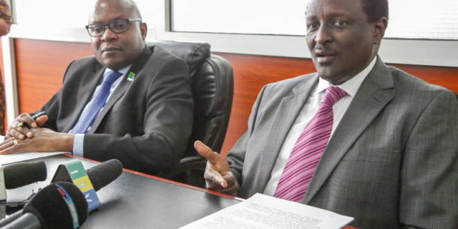 Naibu Katibu Mkuu wa Ofisi ya Makamu wa Rais, Balozi Joseph Sokoine akitoa ufafanuzi kuhusu marufuku ya matumizi ya mifuko ya plastiki wakati akiongea na Waandishi wa Habari leo Jijini Dodoma. Serikali imepiga marufuku matumizi na biashara ya mifuko ya plastiki ifikapo tarehe 1 Juni, 2019. Kushoto ni Kaimu Mkurugenzi wa Idara ya Mazingira, Kanizio Fredrick Manyika.