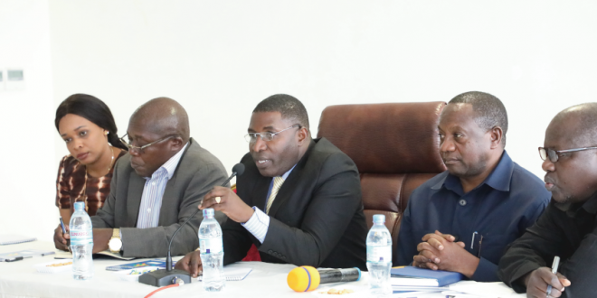Kamishna wa Umeme na Nishati Jadidifu, Mhandisi Leonard Masanja akiwasalimia Wafanyakazi na Menejimenti na Bodi ya Wakala wa Nishati Vijijini (REA) wakati wa kikao chao na Waziri wa Nishati, Dkt Medard Kalemani kilichofanyika jijini Dodoma. Kulia kwake ni Kaimu Mkurugenzi Mkuu wa REA, Mhandisi Amos Maganga na kushoto kwake ni Mjumbe wa Bodi ya REA, Dkt Andrew Komba.