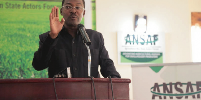 Mkurugenzi wa na Jukwaa Lisilo la Kiserikali la Wadau wa Kilimo (ANSAF) Audax Rukonge akizungumza wakati wa mkutano wa wadau wa kilimo.