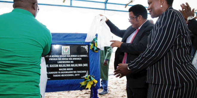 WAZIRI MKUU, KASSIM MAJALIWA, AWEKA JIWE LA MSINGI UJENZI WA JENGO LA ABIRIA, KATIKA UWANJA WA NDEGE WA MWANZA