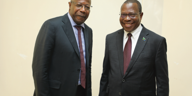 Waziri wa Fedha na Mipango, Mhe. Dkt.Philip Isdor Mpango (Mb), akisalimiana na Mkuu wa Global Fund Barani Afrika Bw. Linden Morrison, walipokutana na kufanya mazungumzo Jijini Dodoma ambapo pande hizo mbili zimeahidi kuendelea kushirikiana ambapo Global Fund imeahidi kuipatia Tanzania dola milioni 600 mapema Januari mwaka 2021