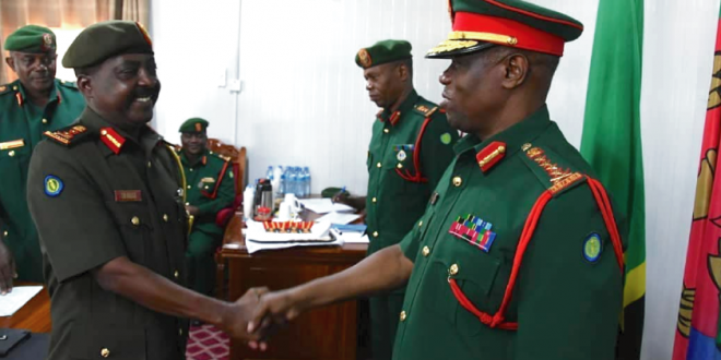 Mkuu wa Majeshi ya Ulinzi na Usalama, Jenerali Venance Mabeyo, kwa niaba ya Rais wa Jamhuri ya Muungano wa Tanzania na Amiri Jeshi Mkuu, Dkt. John Pombe Magufuli akimvalisha cheo kipya, Meja Jenerali Charles Mbuge, baada ya kupandishwa cheo tarehe 3 Jun 2020 Makao Makuu ya JWTZ ya Muda yaliyopo Msalato Jijini Dodoma.