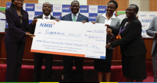Waziri wa Fedha na Mipango, Mhe. Dkt. Phillip Mpango (katikati), akipokea mfano wa hundi kwa niaba ya Serikali yenye thamani ya Sh. Bilioni 15.2 ikiwa ni gawio kutoka kwa Benki ya NMB, wa pili kulia ni Kaimu Katibu Mkuu wa Wizara hiyo ambaye ni Naibu Katibu Mkuu wa Wizara hiyo …