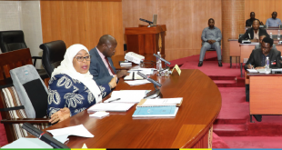 Makamu wa Rais wa Jamhuri ya Muungano wa Tanzania Mhe. Samia Suluhu Hassan akizungumza na Viongozi wa Menejmenti na Watumishi wa Idara ya Mazingira kwenye Ofisi ya Makamu wa Rais Muungano na Mazingira katika kikao Kazi cha siku tatu kilichoanza Disemba 10, 2020 Jijini Dodoma. kushoto ni Waziri wa Nchi …