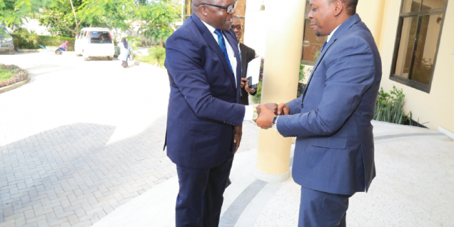 Katibu Mkuu Wizara ya Mambo ya Nje na Ushirikiano wa Afrika Mashariki, Balozi Brigedia Jenerali Wilbert Ibuge akutana na kufanya mazungumzo na Mwanansheria Mkuu wa Zanzibar Dkt. Mwinyi Talib Haji katika Afisi za Mwanasheria Mkuu mjini Zanzibar