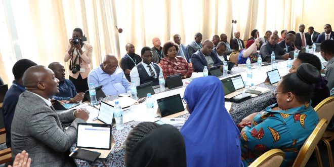 Waziri wa Nchi, Ofisi ya Waziri Mkuu, Sera, Bunge, Kazi, Vijana, Ajirana Wenye Ulemavu, Mhe. Jenista Mhagama akiwasilisha maelezo ya Ofisiya Waziri Mkuu kuhusu Muundo na Majukumu ya Ofisi hiyo, Sera, Uratibuna Bunge pamoja na Kazi, Ajira, Vijana na Wenye Ulemavu mbele yaWajumbe wa Kamati ya kudumu ya Bunge ya Katiba na Sheria katika ofisiza Bunge Jijini Dodoma.