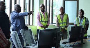 Mhandisi Kashinde Musa akifafanua jambo kwa baadhi ya wajumbe wa menejimenti ya Wizara ya Ujenzi na Uchukuzi (Sekta ya Ujenzi) wakati menejimenti hiyo ilipotembelea chumba maalumu chenye mifumo ya TEHAMA kitakacho iwezesha Wizara kufuatilia kwa karibu utendaji wa mizani, barabara, viwanja vya ndege, karakana pamoja na vivuko. Mhandisi Kashinde Musa …