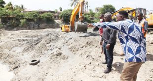 Muonekano wa Daraja la Jangwani jijini Dar es Salaam ambalo kazi ya uchimbuaji tope ili kudhibiti mafuriko pindi mvua za masika zitakapoanza baadaye mwezi ujao. Katibu Mkuu Wizara ya Ujenzi na Uchukuzi (Sekta ya Ujenzi) Arch. Elius Mwakalinga akisisitiza jambo kwa Meneja Mradi wa Usafishaji Daraja la Jangwani, Eng. Elisony …