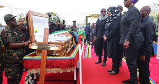 Rais wa Jamhuri ya Muungano wa Tanzania na Amiri Jeshi Mkuu wa Majeshi ya Ulinzi na Usalama Mhe. Samia Suluhu Hassan, akiongoza Viongozi na Wananchi wa Mkoa wa Dar es salaam kuaga Mwili wa aliyekuwa Rais wa Jamhuri ya Muungano wa Tanzania Mhe. Hayati Dkt. John Pombe Magufuli katika Uwanja …