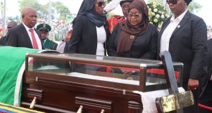 Rais wa Jamhuri ya Muungano wa Tanzania Mhe. Samia Suluhu Hassan, akilihutubia Taifa na Viongozi wa Nchi na Serikali kutoka Mataifa mbalimbali Duniani kwenye Mazishi ya Kitaifa ya kuaga Mwili wa aliyekuwa Rais wa Jamhuri ya Muungano wa Tanzania Mhe. Hayati Dkt. John Pombe Magufuli katika Uwanja wa Jamhuri JIjini …