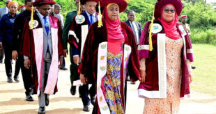Rais wa Jamhuri ya Muungano wa Tanzania Mhe. Samia Suluhu Hassan na Viongozi wengine akiwa kwenye maandamano ya Kitaaluma wakati walipokuwa wakiingia kwenye Ukumbi wa Dkt. Ali Mohamed Shein Kampasi ya Tunguu kwa ajili ya kushiriki Hafla ya Mahafali ya 19 ya Chuo Kikuu cha Taifa cha Zanzibar (SUZA) ambapo …
