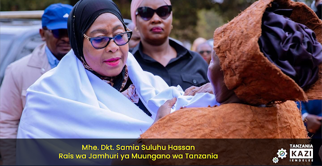 Rais wa Jamhuri ya Muungano wa Tanzania na Amiri Jeshi Mkuu, Mhe. Dkt. Samia Suluhu Hassan akiwa na viongozi mbalimbali kwenye picha ya pamoja na baadhi ya Maafisa na Askari wa Kikosi Kazi kutoka Jeshi la Wananchi wa Tanzania (JWTZ) walioshiriki Ujenzi wa Makao Makuu ya Ulinzi wa Taifa (MMUT), Kikombo Mkoani Dodoma