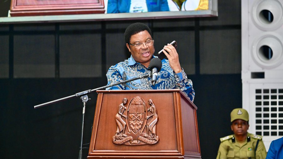 Waziri Mkuu Kassim Majaliwa akizungumza kwa njia ya Simu na Rais wa Jamhuri ya Muungano wa Tanzania Dkt. Samia Suluhu Hassan alipopiga simu kuzungumza na wadau na Mashabiki wa mchezo wa ngumi, wakati wa tukio maalum la pambano la ngumi la ‘Knockout ya Mama’ linalofanyika katika ukumbi wa Super Dome, Masaki jijini Dar es Salaam, Desemba 26, 2024