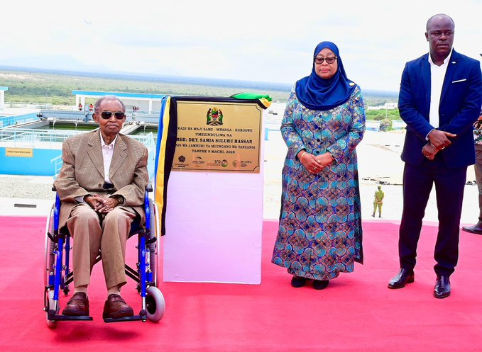 Rais wa Jamhuri ya Muungano wa Tanzania, Mhe. Dkt. Samia Suluhu Hassan akizindua mradi wa maji wa Same-Mwanga-Korogwe kwenye hafla iliyofanyika Mwanga mkoani Kilimanjaro tarehe 09 Machi, 2025