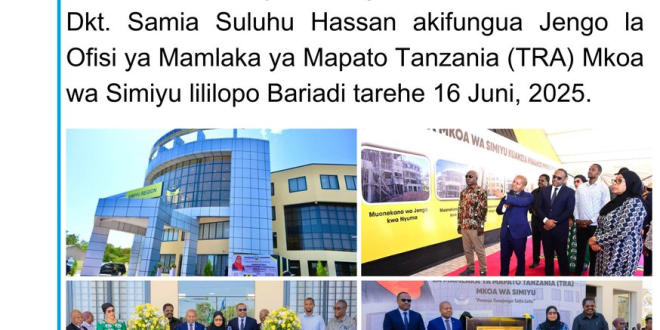 Rais wa Jamhuri ya Muungano wa Tanzania, Mhe. Dkt. Samia Suluhu Hassan akifungua Jengo la Ofisi ya Mamlaka ya Mapato Tanzania (TRA) Mkoa wa Simiyu lililopo Bariadi.