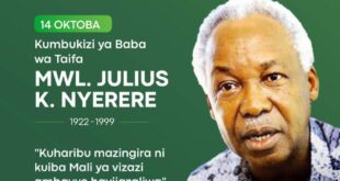 Leo tunamkumbuka Baba wa Taifa, Mwalimu Julius Kambarage Nyerere — mtu aliyeweka msingi wa umoja, utu na maendeleo kwa taifa letu. Fikra zake bado zinatupa dira ya kujenga Tanzania yenye haki, usawa na heshima kwa kila mmoja.